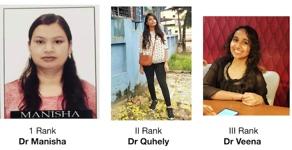 First Rank : Dr Manisha NHMC Delhi