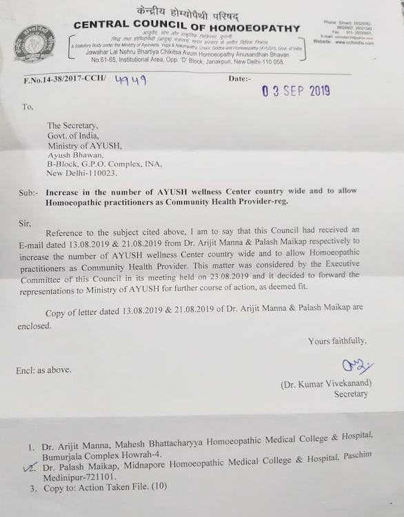 Central Council of Homoeopathy decided to include Homeopathy Practitioners as Community Health Providers and requested the Ministry of Ayush to take favorable action. This will definitely add more job opportunity to new generation Homoeopaths.