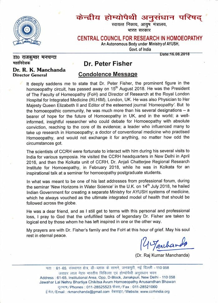 Peter was a real Spokesperson who was a scientific face, who spoke for Homeopathy not only in the British parliament but at every important medical and legal interaction in the world that mattered.
