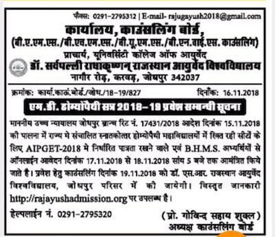 In Rajasthan as per this notification- No NEET and AIAPGET is required for admission for BHMS and PG. Admission is possible even after the cutoff date published by Ministry of Ayush !!