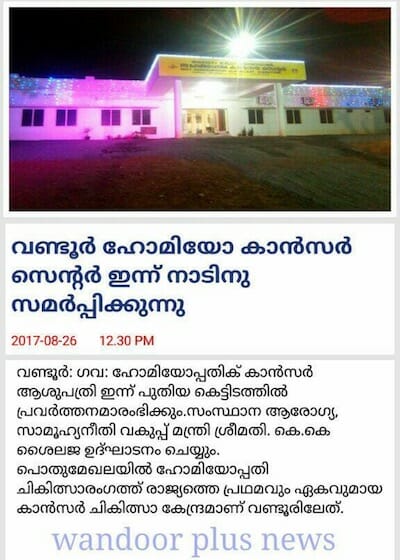 History of Kerala Govt Homoeopathy Cancer Centre