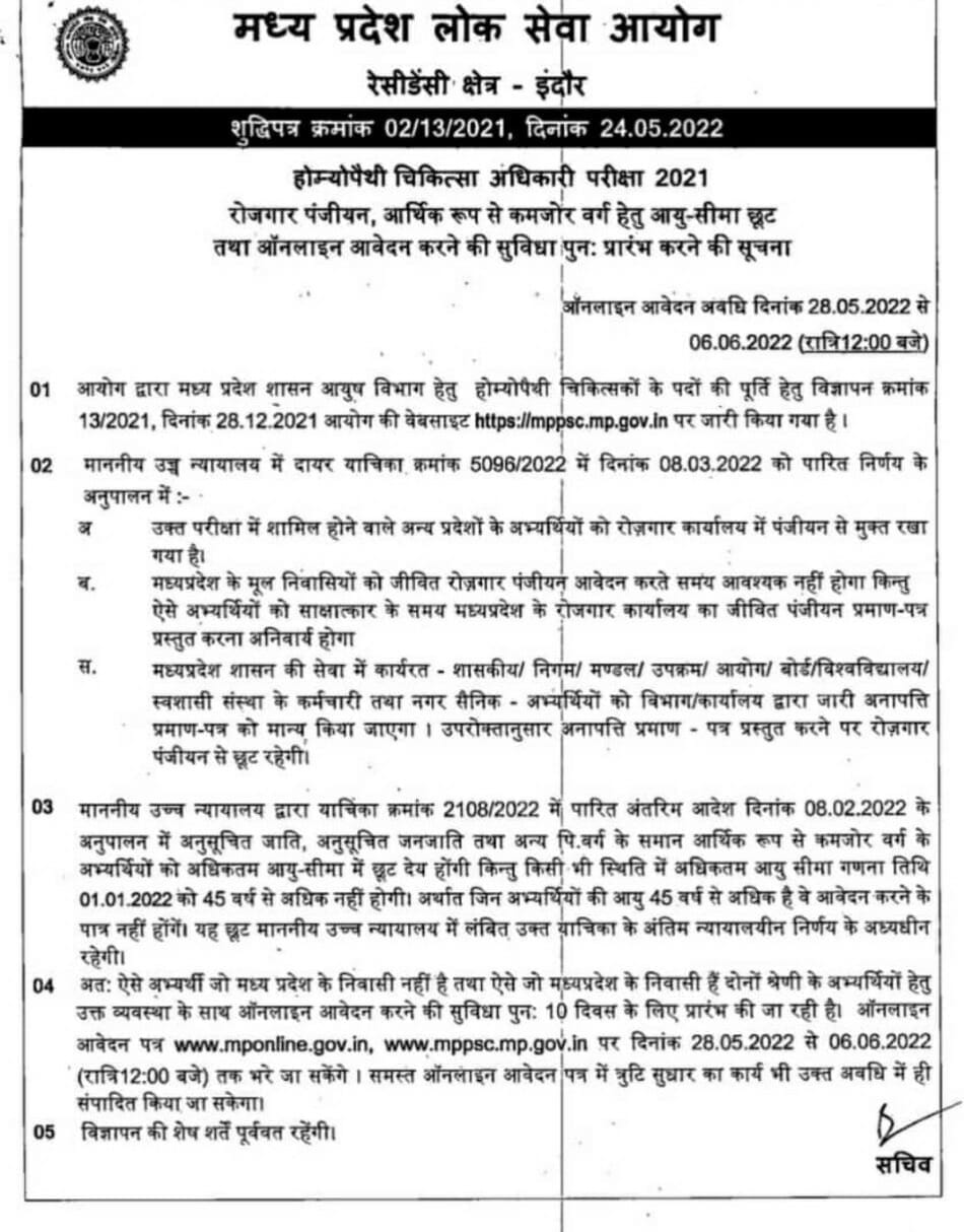 Eligibility : BHMS ( Resident of Madhya Pradesh or any other state,registered in Homoeopathic medicine board of any state)
