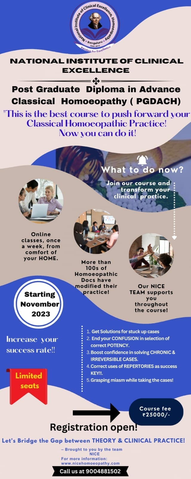 Postgraduate diploma in advanced classical Homoeopathy by NICE September 27, 2023 admin Health related Courses 0 Website : https://nicehomoeopathy.com/ NICEPostgraduate diploma in advance classical Homoeopathy